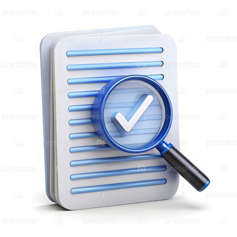 Синий значок иконы на белом листе документа с увеличительным стеклом. генеративный ИИ