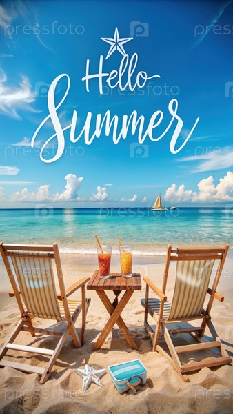 Расслабляющие пляжные стулья с видом на океан и летними напитками