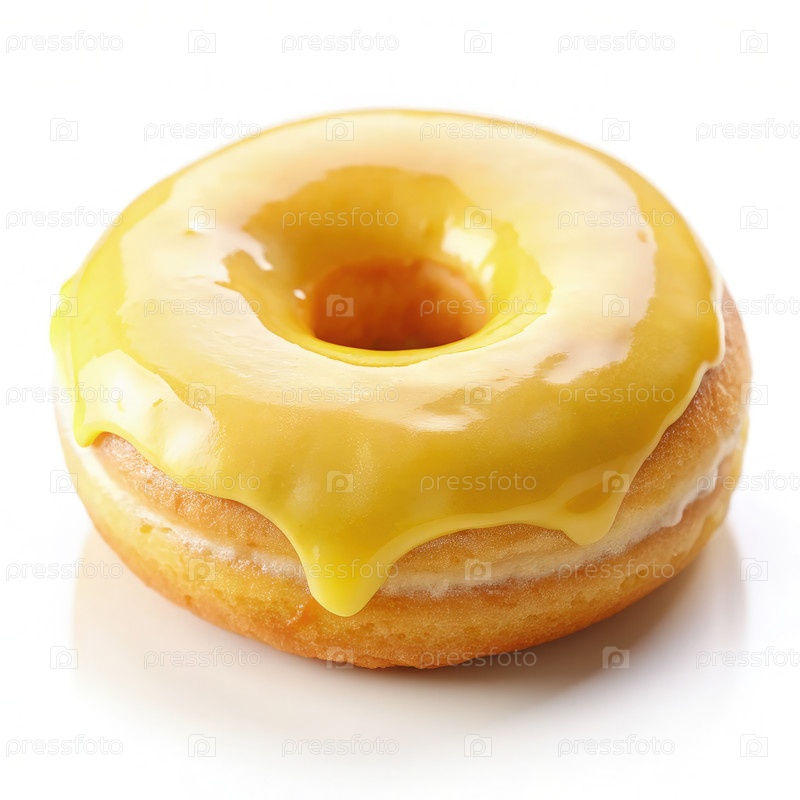 Одиночный лимонный глазированный пончик, изолированный на белом фоне