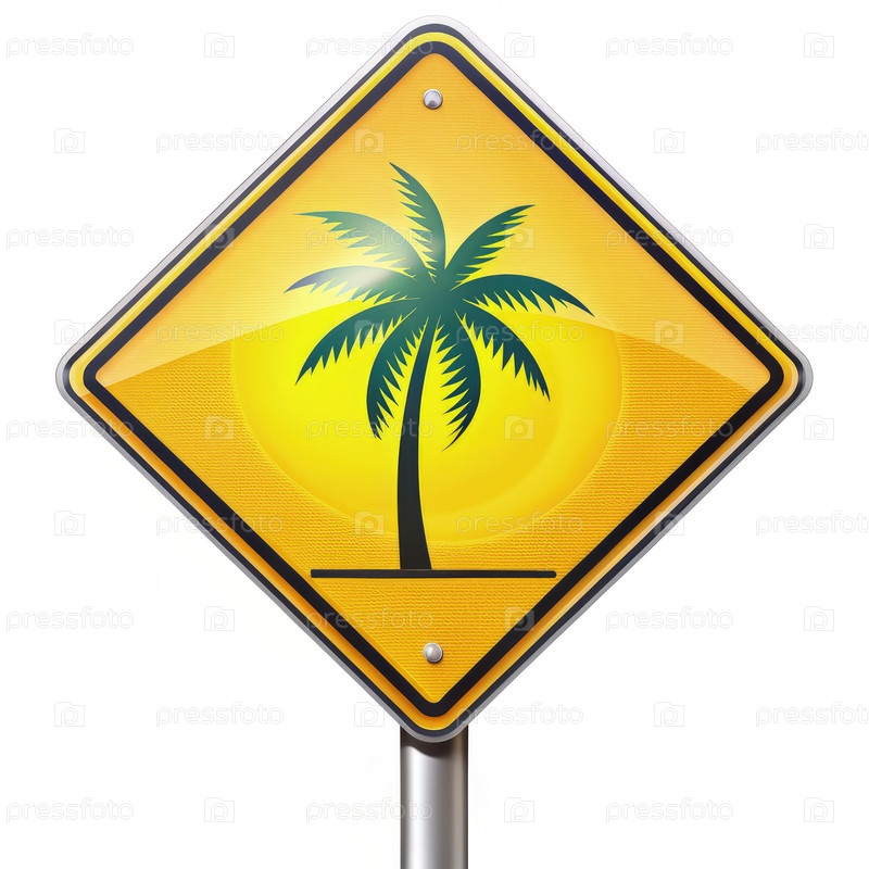 Желтый дорожный знак с пальмой. генеративная ИИ