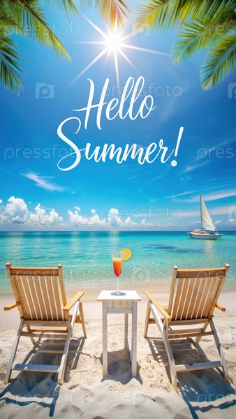 Два пляжных стула, обращенные к океану в солнечный летний день