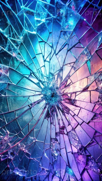 Окно из разбитого стекла с радужным светом. генеративный ИИ