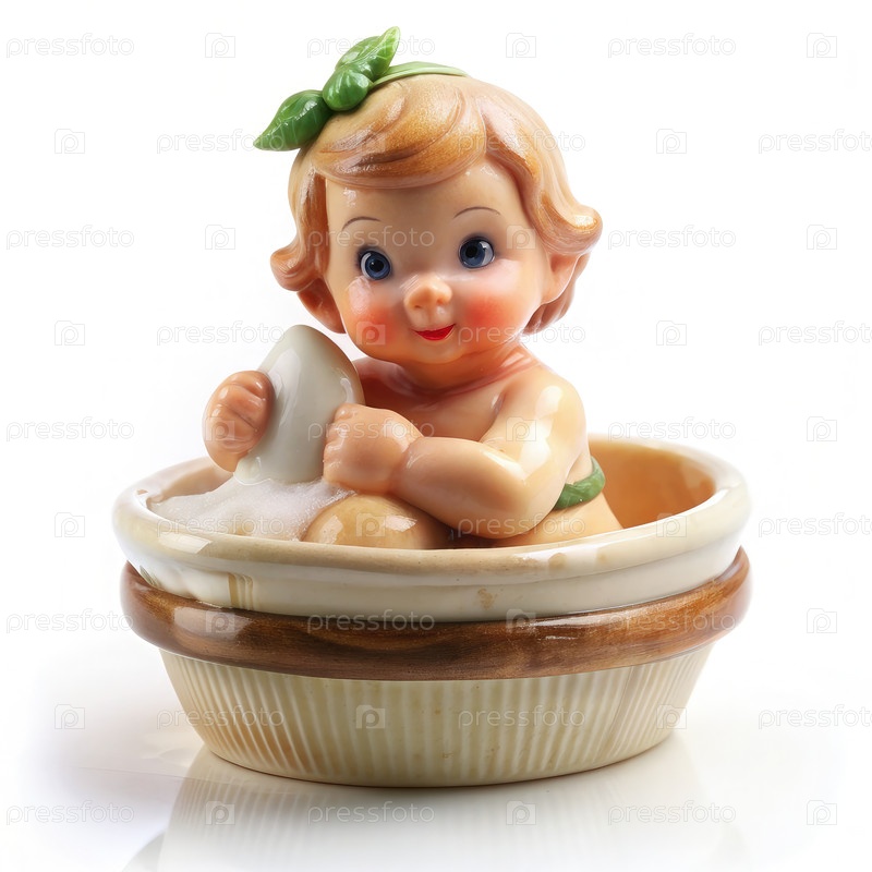 Керамическая фигурка ребенка, сидящая в миске. генеративный ИИ