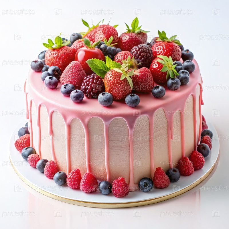 Розовый торт на день рождения с ягодами