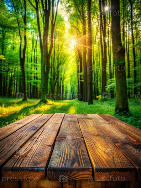 Пустой деревянный стол в солнечном лесополосе