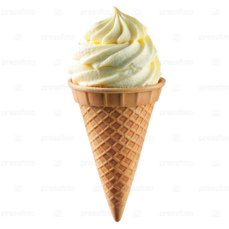 Конус ванильного мороженого на белом фоне