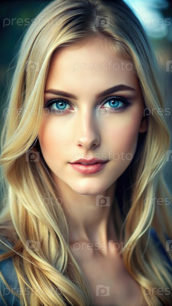 Близкий портрет молодой женщины с светлыми волосами и голубыми глазами