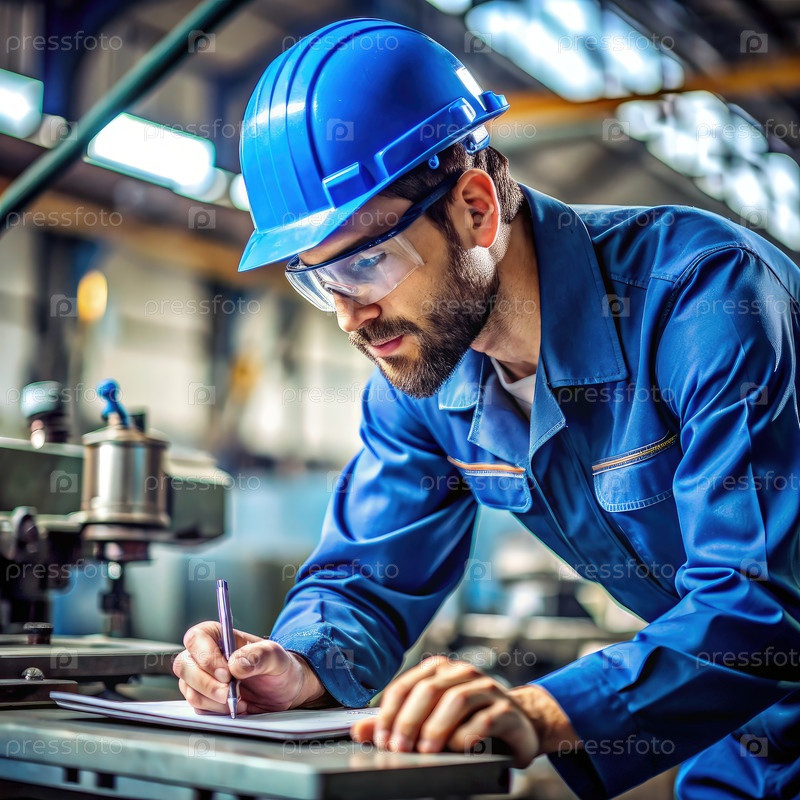 Промышленный работник завершает производственный контрольный список на фабрике