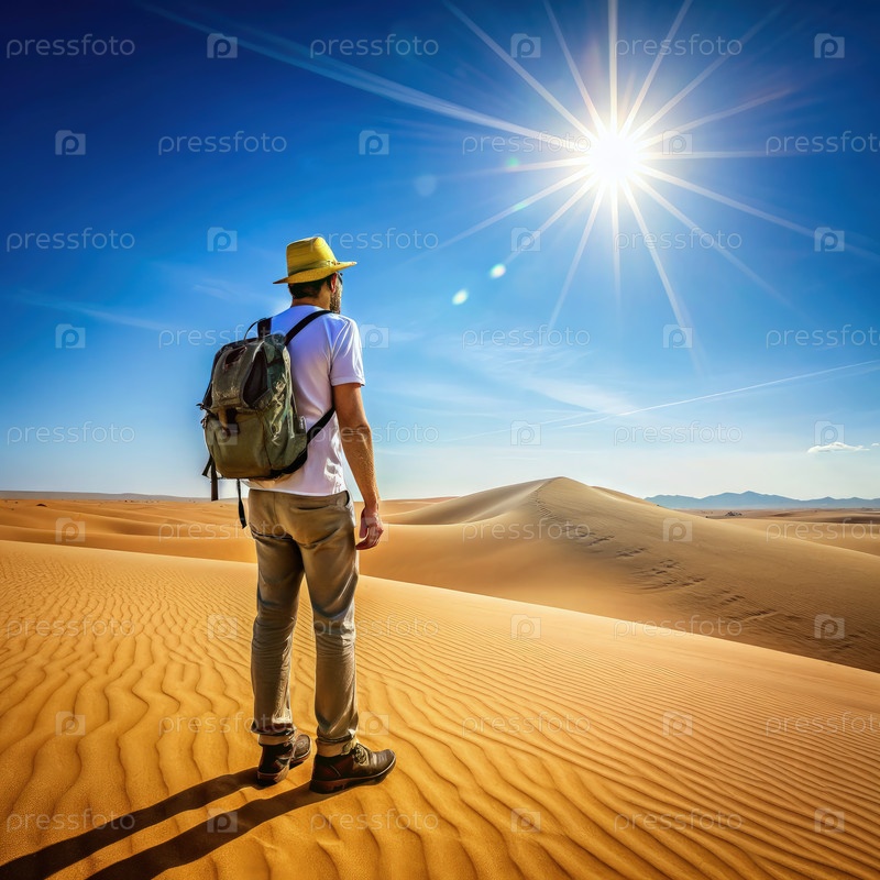 Путешественник, путешествующий под солнцем пустыни. генеративный сольный ИИ