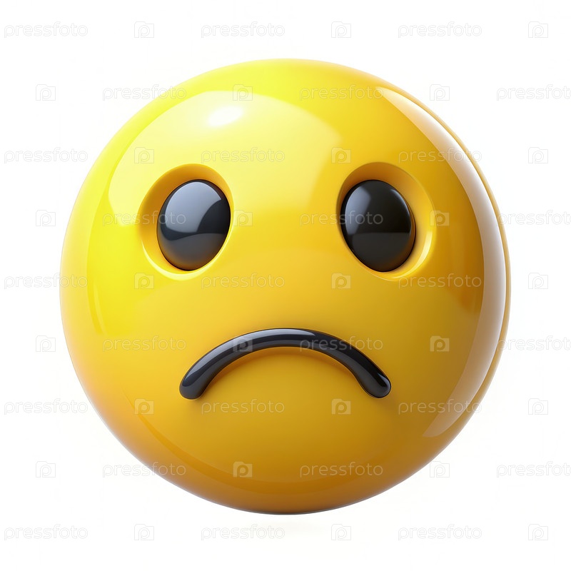 Печальный желтый эмодзи с морщиной и черными глазами на белом фоне. генеративный ИИ