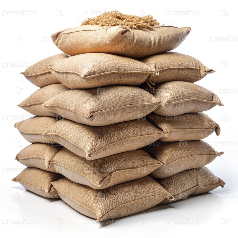Складываемые мешки с песком для контроля и защиты от наводнений на белом фоне