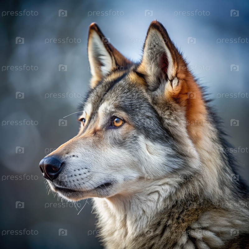 Профильный портрет волчьей собаки, которая смотрит в сторону