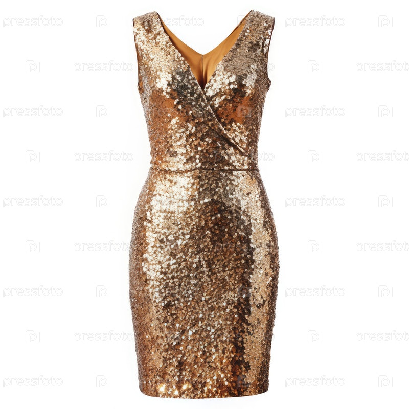 Золотозащищенное платье без рук в виде V-Neck на белом фоне