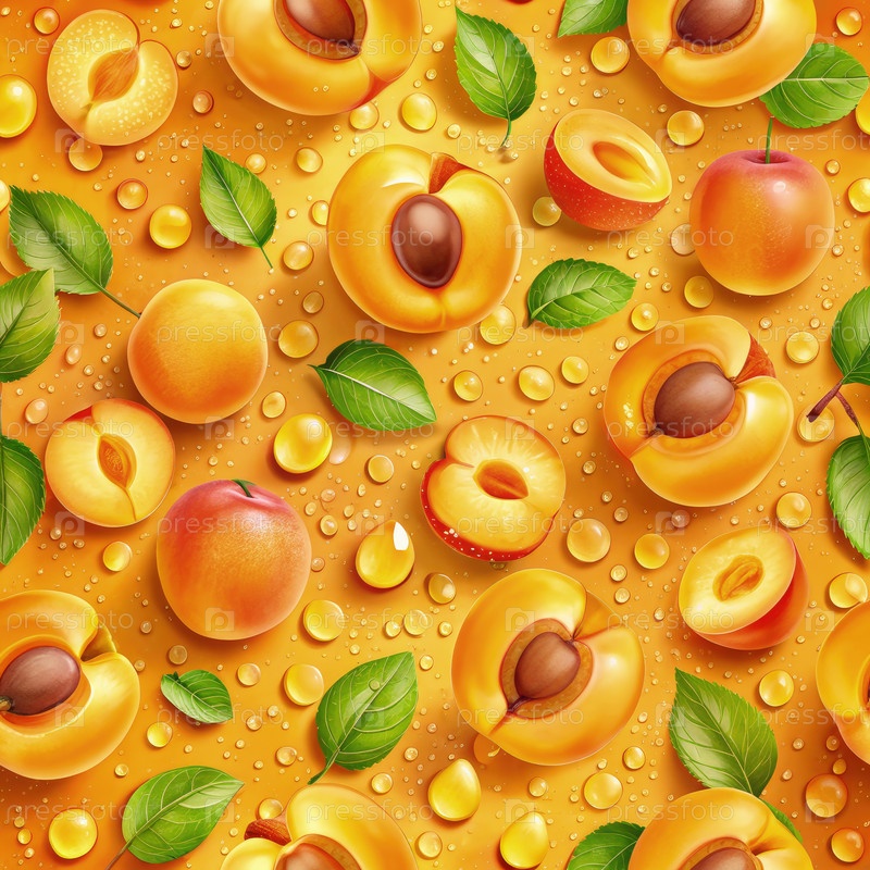 Бесшовный шаблон сочных абрикосов и зеленых листьев