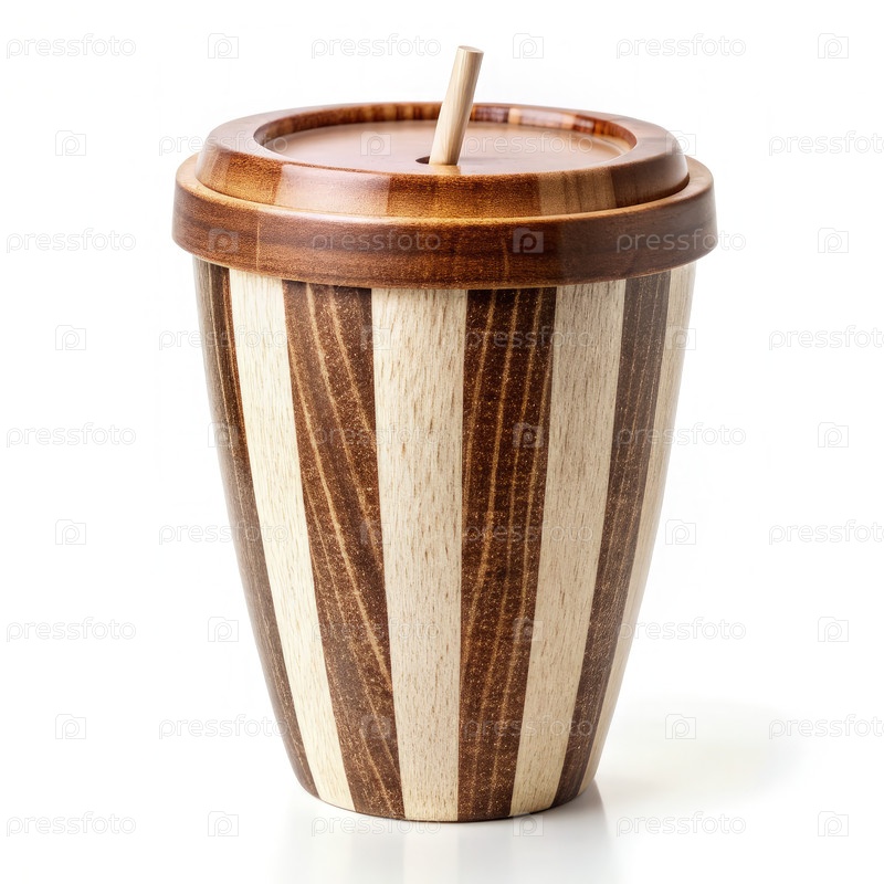 Деревянный стакан с соломой. генератив AI