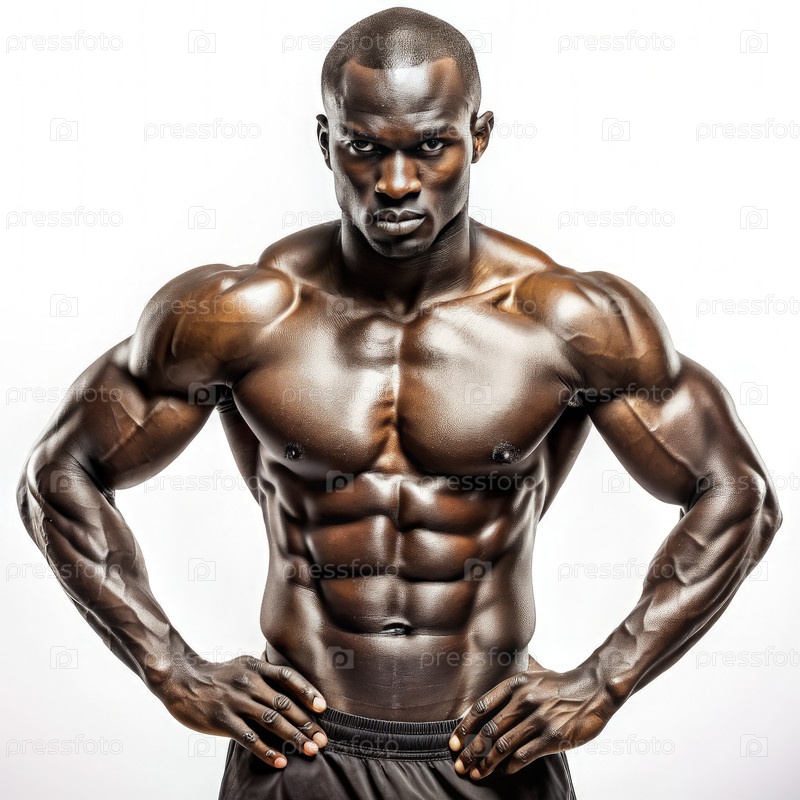 Мышечная африканская спортсменка позирует на белом фоне