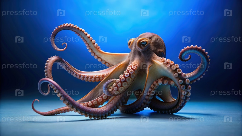 Студийная фотография осьминога на синем фоне