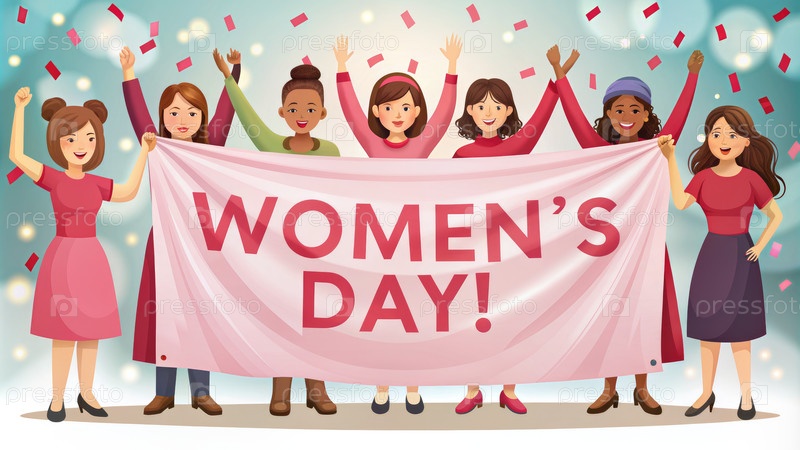 Разнообразная группа женщин, держащих флаг Дня женщины