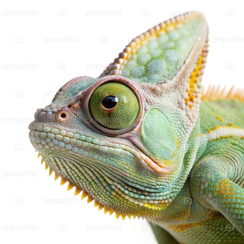 Завуалированный хамелеон боковой профиль Близкий портрет с зеленым глазом. генеративная ИИ