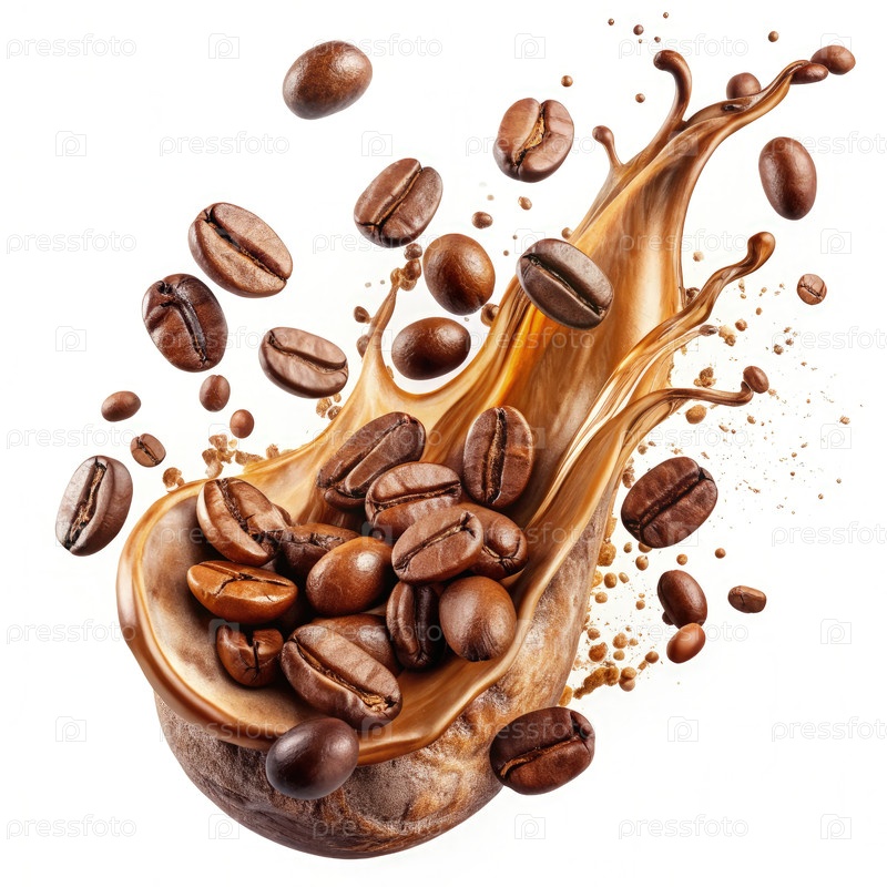 Кофе брызнет в чашку, наполненную кофейными зернами