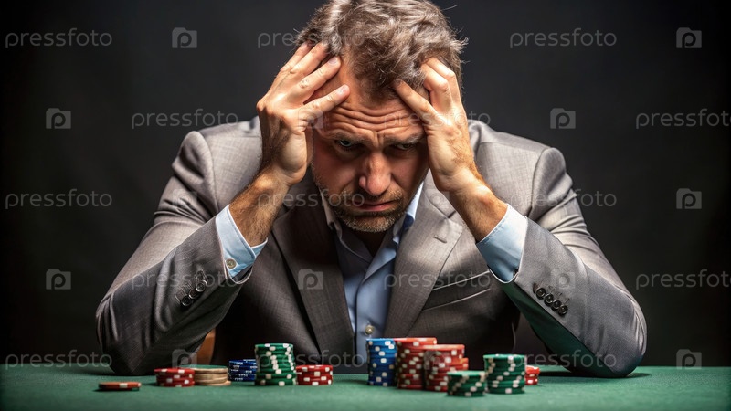 Человек в костюме сидит за столом с фишками для покера
