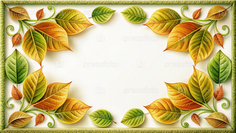 Осенние листья Рамка Иллюстрация с зелеными и желтыми листьями. генеративная ИИ