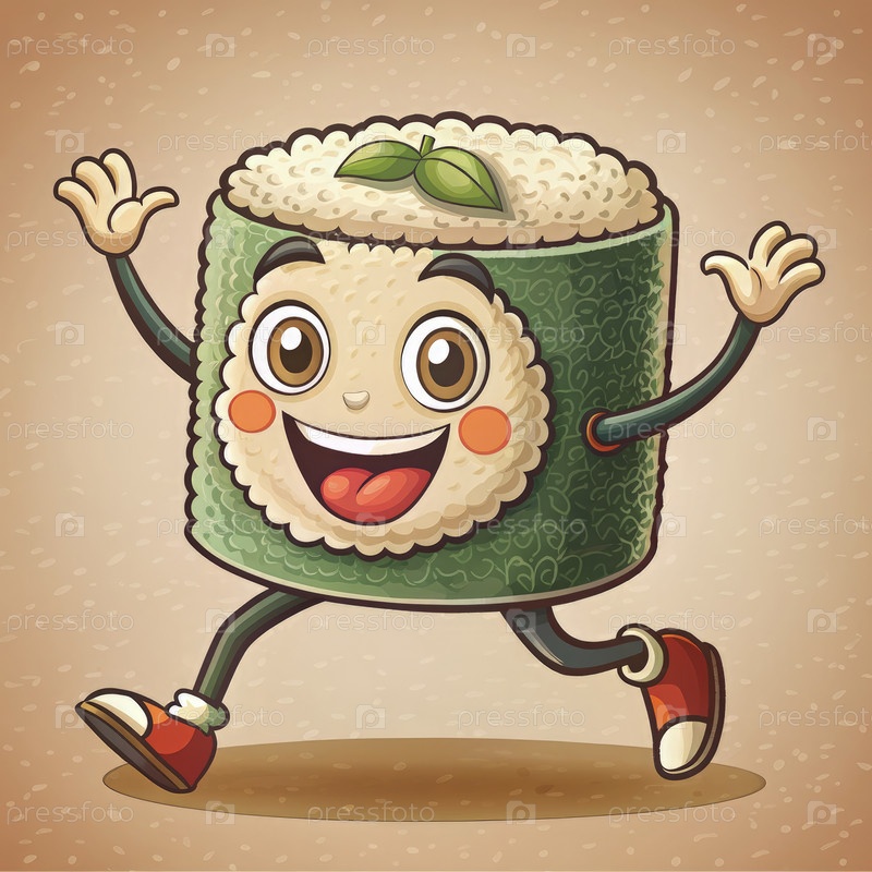 Веселые мультфильмы суши улыбаются. генеративный ИИ