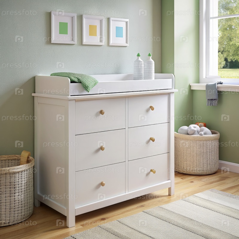 Белый переодевательный сундук с шестью ящиками в детской комнате