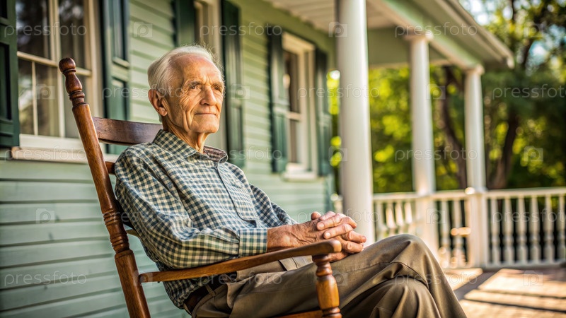 Пожилой мужчина отдыхает на люльке в доме 1950-х годов