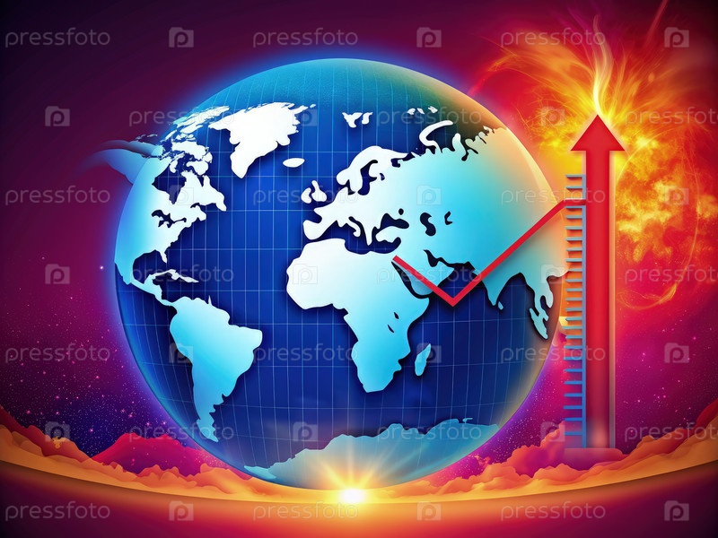 Увеличение глобальной температуры проиллюстрировано красной стрелкой и термометром