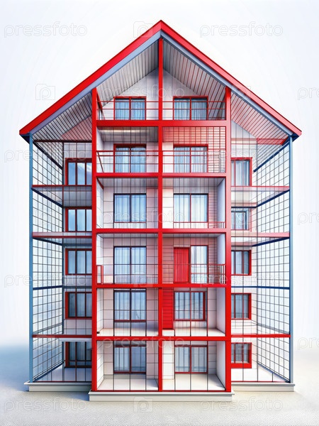 Красно-белое здание с окнами и красной крышей. генеративный ИИ