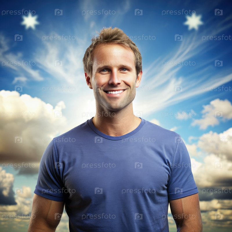Улыбающийся австралийский мужчина в футболке против облачного неба