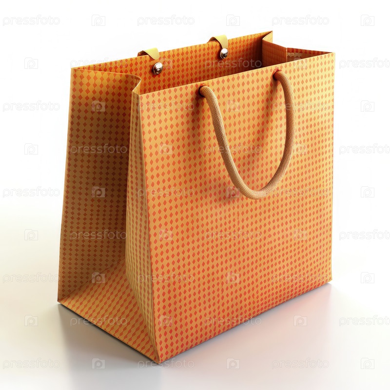 Оранжевая бумажная сумка для покупок с пунктирным узором на белом фоне