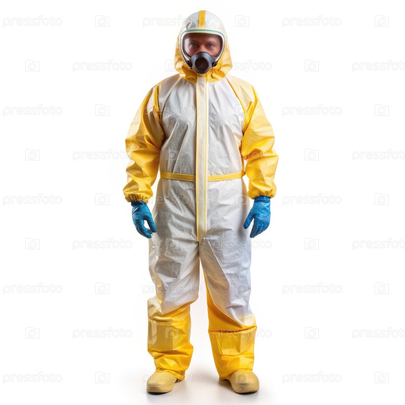 Желто-белый защитный костюм. генерирующий мужчина ИИ