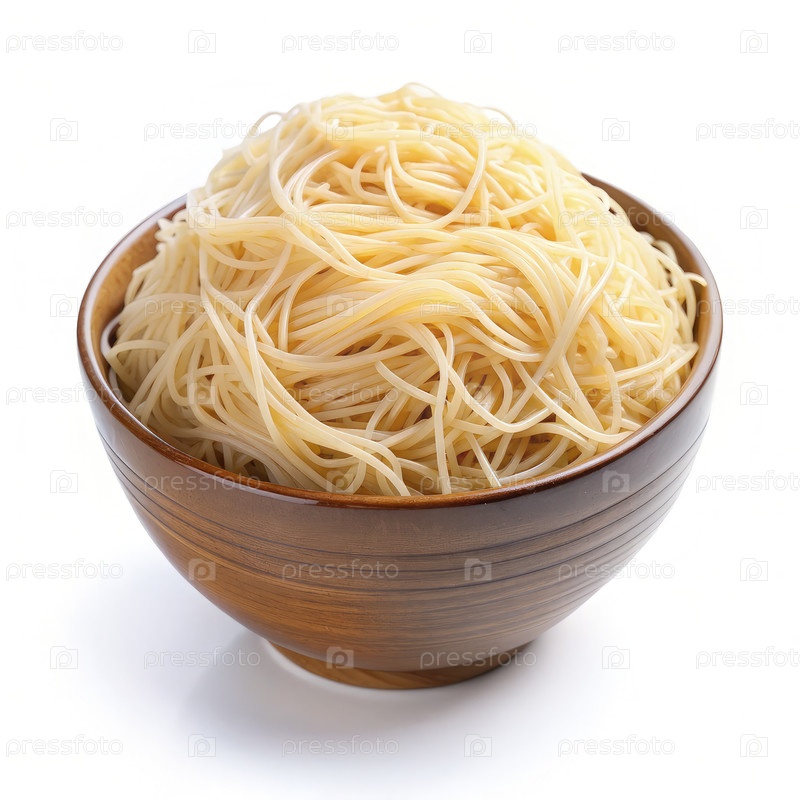 Bowl of Cooked Vermicelli Noodles on a White Background (Касла с приготовленными лапшами вермицелли на белом фоне)