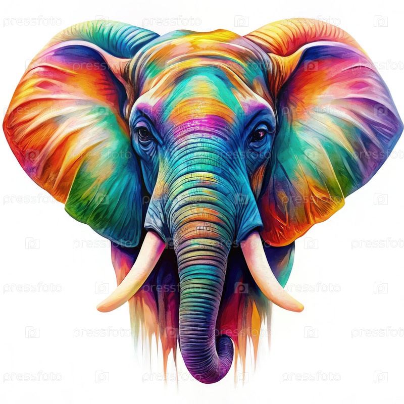 Красочный слон с зубами на белом фоне