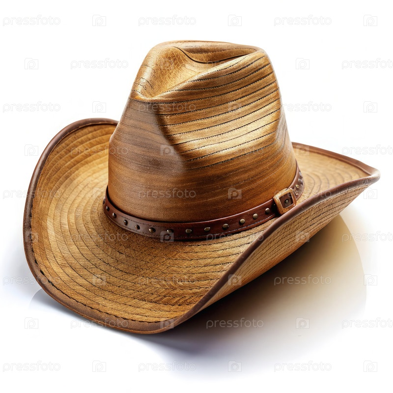 Дубовая ковбойская шляпа с кожаной полосой на белом фоне