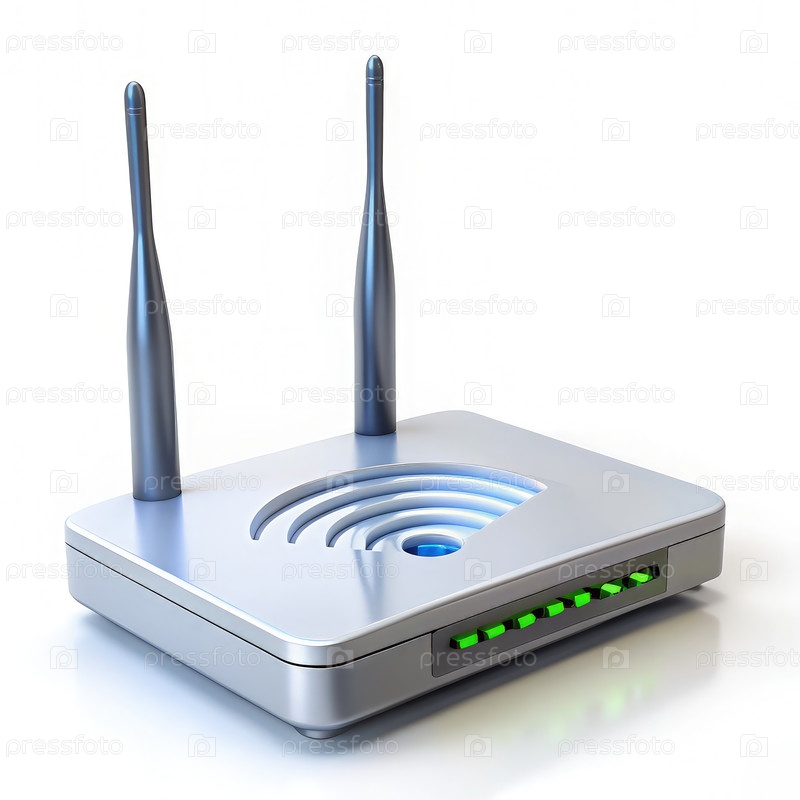 Серебряный беспроводный маршрутизатор с сигналом на белом фоне. генеративная ИИ