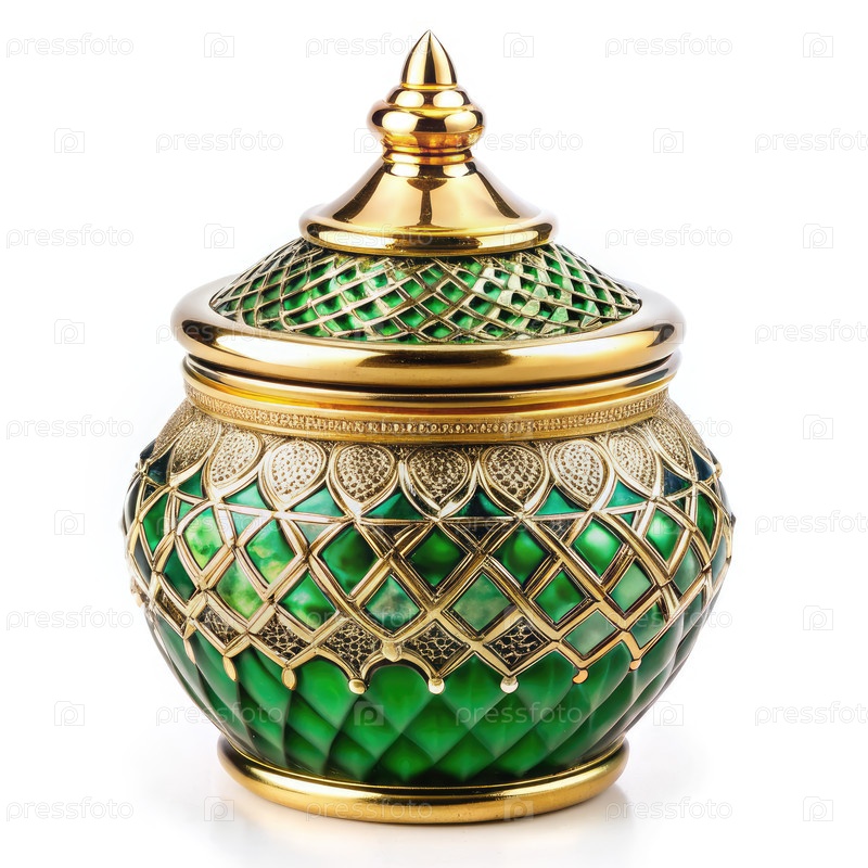 Королевская зеленая стеклянная банка с золотой крышкой. генеративный AI