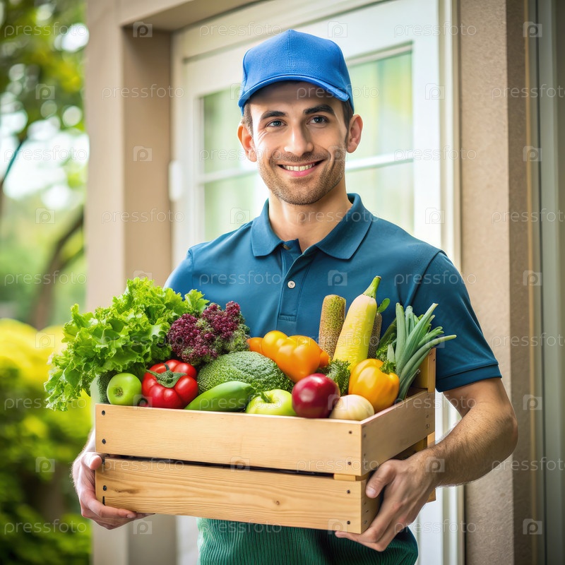 Коробка с свежими овощами.Генеративный человек ИИ