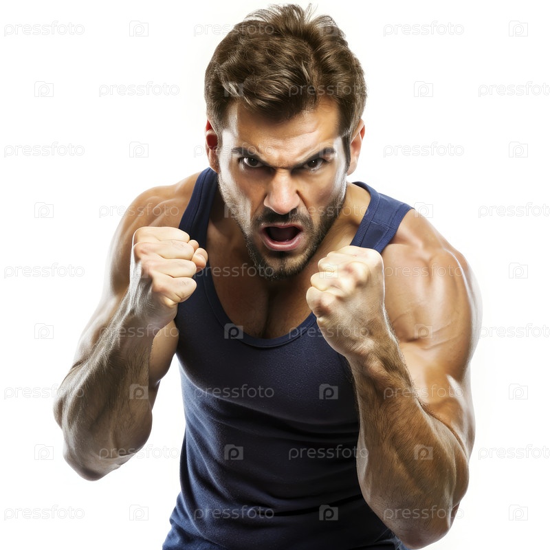 Мускульный мужчина сгибается в танковом топе. генеративный ИИ
