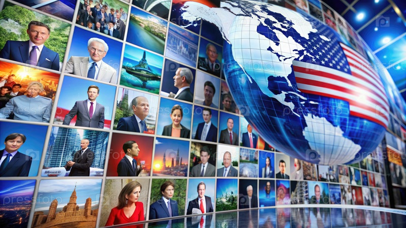 Глобальная новостная стена с американским флагом глобус. генеративный ИИ