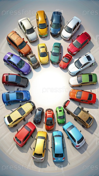Круг автомобилей на парковке. генеративный ИИ