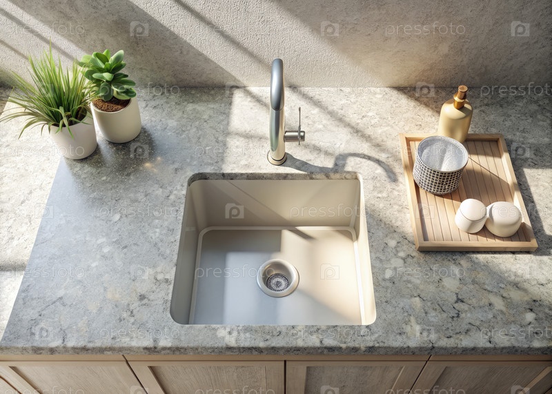 Кухонная раковина рядом с режущей доской. генеративный ИИ