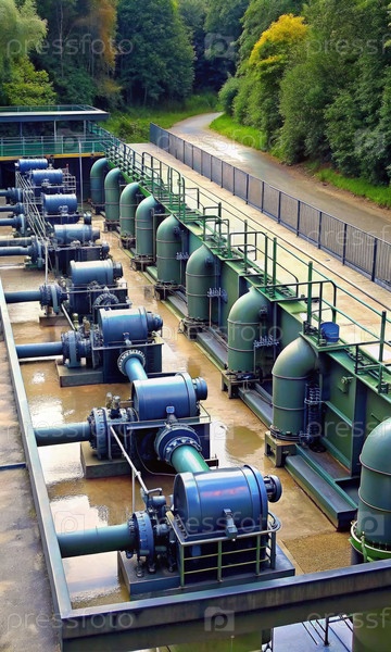 Массив водяных насосов на насосной станции. генеративный ИИ