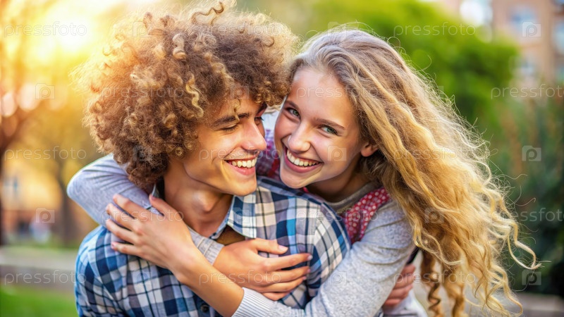 Молодой мужчина и женщина обнимают друг друга. генеративный ИИ