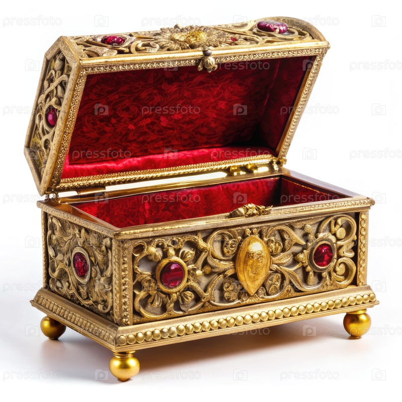 Украшенный золотой ящик с красной бархатной подкладкой. генеративная ИИ