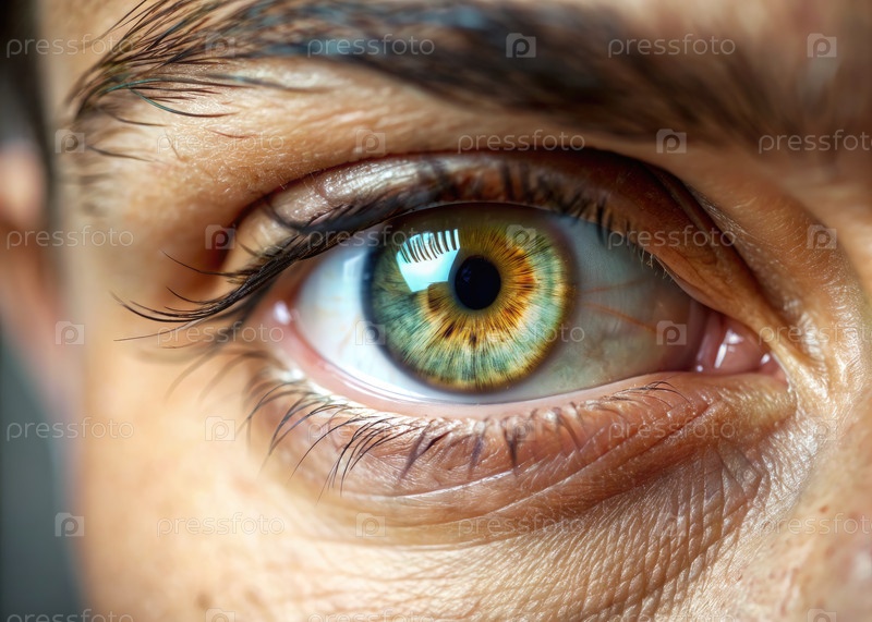 Близкий боковой вид человеческого глаза с зеленой и золотой радужкой