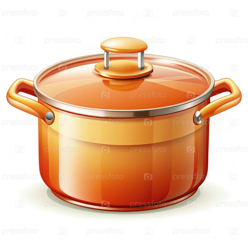 Оранжевый горшок с крышкой на белом фоне
