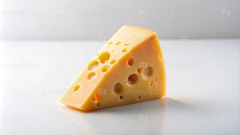 Триугольный кусочек швейцарского сыра, изолированный на белом фоне